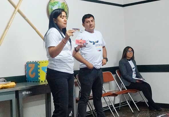Los participantes al taller recibieron un gorro, un pin con distintivos del Ministerio de Cultura y la frase: Defensores del Patrimonio Cultural y un fólder con separatas referentes al Patrimonio Cultural y varias cartillas ilustrativas.