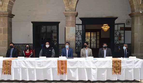 Mesa de honor: Luis Vásquez. Rector de la UPAGU; Judith Padilla Malca, Directora de la DDC; Alex Gonzáles Arapa, Gerente de Desarrollo Social del GRC; Adres Villar Narro, Alcalde de la MPC; Ricardo Mejía Ramírez, Jefe de Educación de ALAC; Juan Portal Pizarro, Presidente de la Comisión de Cultura de la MPC; Luis Llaque Silva, Director de la UGEL Cajamarca.