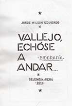 Vallejo, echóse a andar (Edición del autor) de Jorge Wilson Izquierdo, poeta que inició sus publicaciones a partir de 1970 con su libro Cráneos profundos. JWI de manera diligente siempre nos entrega textos interesantes editados artesanalmente, confirmando así su dedicación y entrega a la Literatura. El libro Vallejo, echóse a andar es un compendio con una admirable síntesis sobre la biografía del vate universal. Libro versátil que debería ser difundido en los colegios e instituciones superiores.