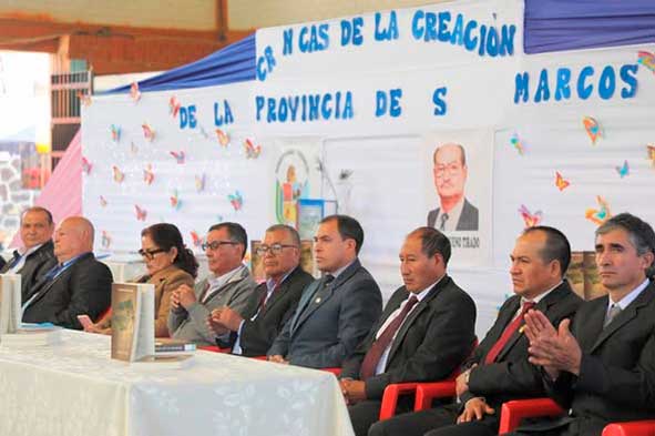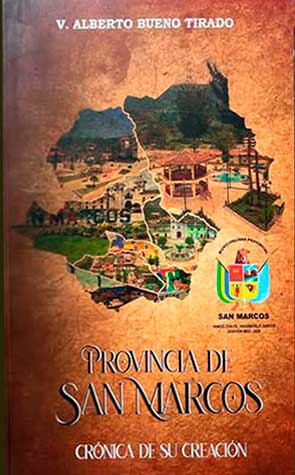 “CRÓNICA DE LA CREACIÓN DE LA PROVINCIA DE SAN MARCOS" DE V. ALBERTO BUENO TIRADO. Juan C. Paredes Azañero El libro "Crónica de la Creación de la Provincia de San Marcos" de V. Alberto Bueno Tirado relata el proceso histórico, social y cultural que llevó a la creación de la provincia de San Marcos. El libro documenta los hechos clave desde 1945 y es una referencia para comprender la historia y el origen de esta provincia peruana. Este libro detalla el contexto y los personajes clave que participaron en la formación de San Marcos, ofreciendo una valiosa perspectiva sobre la identidad local. Los directivos de la UGEL San Marcos, como máximo organismo educativo de esta provincia, estuvieron presentes en este gran suceso literario y en su facebook hicieron la siguiente publicación: