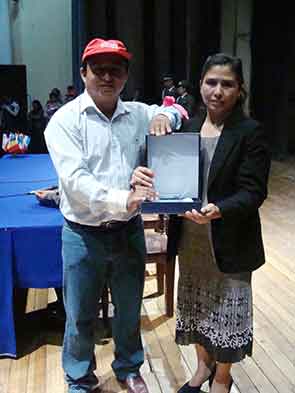 El Lic. Carlos Cabrera Miranda, Gerente de Desarrollo MPC condecora a la Sra. María Jovita Puertas García: Mujer con cualidades especiales |