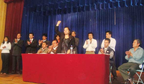 La profesora Julia Enríquez Lizárraga, quien postula como candidata al Vice Decanato Nacional del Colegio de Profesores del Perú (CPPe) por el FRAGMA fue aclamada en la concentración Magisterial que se llevó a cabo,el día de hoy por la mañana, en el Salón de Actos del Instituto Pedagógico Público Hno. Victorino Elorz Goicoechea de Cajamarca.