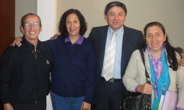 Guillermo Bazán Becerra, Sra. Sara Gutiérrez Sisniegas, Dr. Ruben Vilchez Cerna y Sra. Socorro Barrantes Zurita, en una Sesión de Coordinación en la GRD