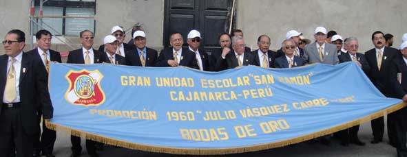Causó conmoción apreciar a los integrantes de las promociones que celebran sus bodas de Oro, de Plata y de Rubí acompañados de sus esposas, emocionados para tomar sus emplazamientos, recibiendo los aplausos del gran público que siempre se concentra para a preciar “La marcha de los sanramoninos” acompañados de los miembros de la APAFA'S de los locales de Chontapaccha y La Recoleta.