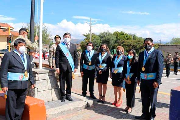 El paseo prosiguió hasta la plaza de armas de Cajamarca, en este escenario se izaron las banderas del Perú, Cajamarca y del Gobierno Regional, para luego dar pase a la tradicional Sesión Solemne.