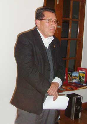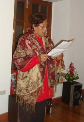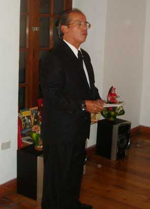 Posteriormente, se rindió homenaje a don Gregorio Díaz Izquierdo, un gran intelectual cajamarquino de larga trayectoria, a cargo de la poeta Sra. Sara Gutiérrez Sisniegas, y el brindis de honor estuvo a cargo del Prof. Juan C. Paredes Azañero, director del Website www.cajamarca-sucesos.com