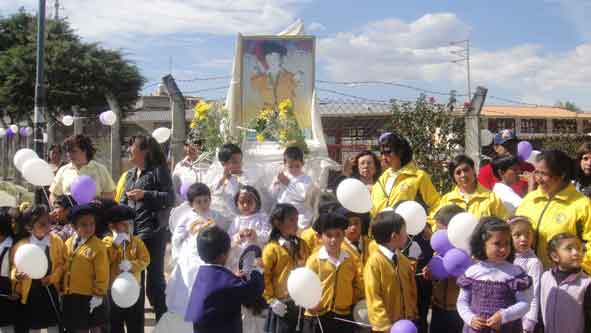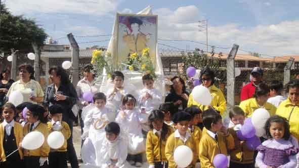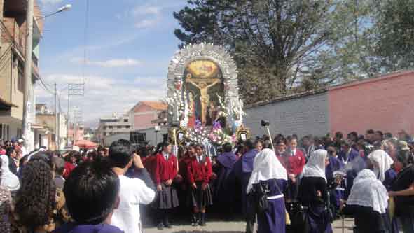 El día sábado 22 la efigie del Señor de los Milagros recorrió las calles de Cajamarca, las fotos que presentamos a continuación fueron tomadas por Omar Paredes Goicochea y corresponde al tramo del Jr. Progreso en la inmediaciones de la I. E. Juan XXIII que dirige el dilecto Prof. Joel Rojas, las alumnas de esta institución educativa conducen el anda acompañadas de una brigada de sus compañeras y de los fieles que se dieron cita a este acto religioso.