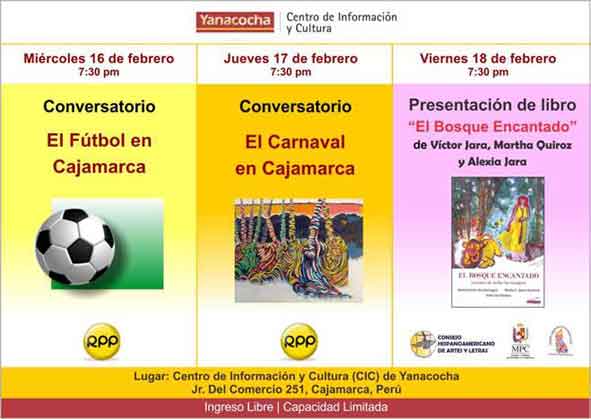 - Jueves 17: Conversatorio “El Carnaval de Cajamarca” con Radio Programas del Perú (RPP).