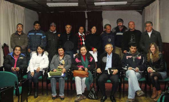 De izquierda a derecha: Prof. Juan Jave Huangal, Prof. Guillermo Salazar Pajares y el Periodista Miguel Chumbe Ortiz
