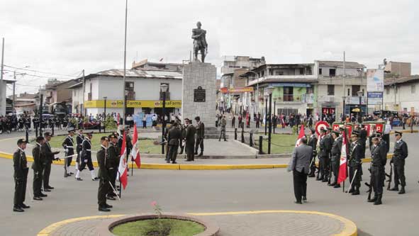 CON EMOTIVA CEREMONIA RINDIERON HOMENAJE LAS AUTORIDADES Y EL PUEBLO CAJAMARQUINO AL CRNL. FRANCISCO BOLOGNESI EN EL “DÍA DE LA BANDERA PERUANA”