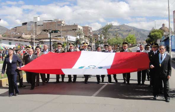 Las autoridades de la Región Cajamarca en el tradicional Paseo de la Bandera por la Av. De los Héroes