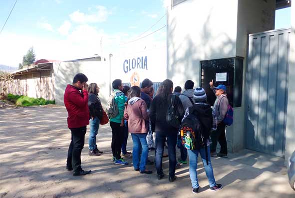La empresa GLORIA S.A. está ubicada a 5,2 kilómetros de Cajamarca, en dirección a Baños del Inca, sobre la carretera a Tartar Grande. La visita fue guiada por el supervisor Leonardo, quien con un lenguaje técnico explico a los estudiantes sampedranos el acopio de la leche, la producción de diversos productos, como los quesos, el manjar, la leche condensada y otros, así como la distribución de los productos. Es preciso remarcar que, esta empresa tiene exigencias tanto para los visitantes, para sus trabajadores como en el control de la calidad de sus productos. Los estudiantes quedaron entusiasmados y motivados con esta visita.