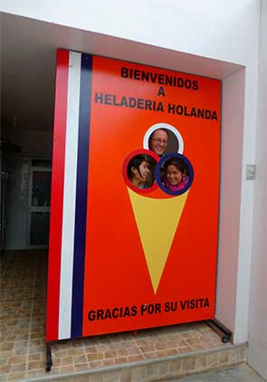 Después, los cajabambinos se trasladaron a la Heladería Holanda S.R.L., la cual se encuentra en el Pasaje Santa Catalina, en la Urbanización La Tulpuna K-22, donde fueron recibidos por la pareja Luz Marina (peruana) y Pepe (Holandés), propietarios de esta empresa artesanal. Ambos explicaron a los visitantes el proceso para la elaboración de sus productos. Desde el inicio con el BPM (Buenas Prácticas de Manufactura) hasta la distribución a sus 8 puntos de venta en la ciudad de Cajamarca. Luz Marina explico la producción de los helados empezando desde la pasteurización, la maduración, el batido, el peso, el control y el congelamiento. Don Pepe, explico la parte administrativa y las siete ventajas de la empresa, para mantenerse siempre en el mercado, ya que llevan 14 años vendiendo sus exquisitos helados. Cabe mencionar que, la mayoría de sus trabajadores son personas sordas mudas. Los estudiantes cajabambinos regresaron felices y contentos.