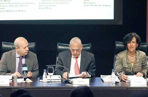 El ministro de Educación, José Ignacio Wert; El secretario general de la OCDE, Ángel Gurría; y la presidenta de la Fundación CYD, Ana Patricia Botín