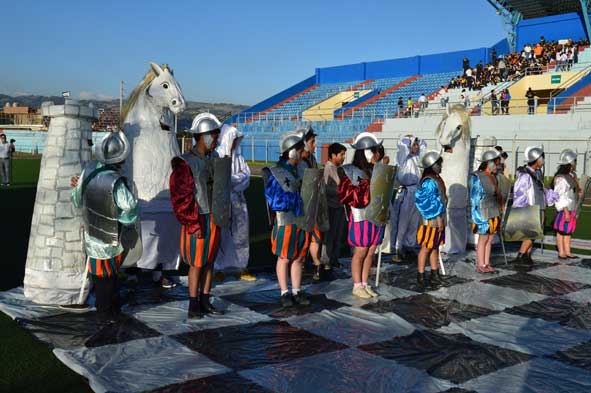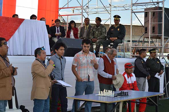 Como antesala del evento se presentaron dos partidas de ajedrez en ‘vivo’ es decir las piezas de ajedrez fueron de -un lado- personajes de las huestes de Atahualpa y del otro de los conquistadores españoles comandados por el soldado de Extremadura Francisco Pizarro ...algunos historiadores aseveran que una de las causa para el asesinato de Atahualpa fue que le ganó a Francisco Pizarro una partida de ajedrez en forma rápida lo que permitió la mofa de los subalternos españoles y la cólera inmensa de Pizarro...