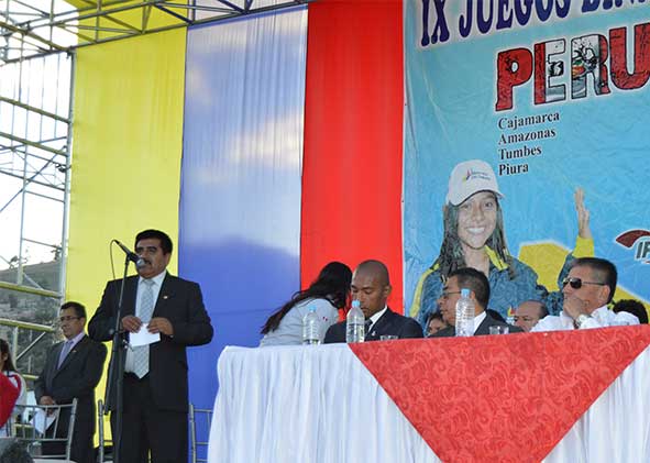 Inauguración de los IX Juegos Binacionales de Integración Fronteriza: Perú – Ecuador a cargo del Mg. Edwin Ezquen Sánchez Gobernador Regional de Cajamarca.