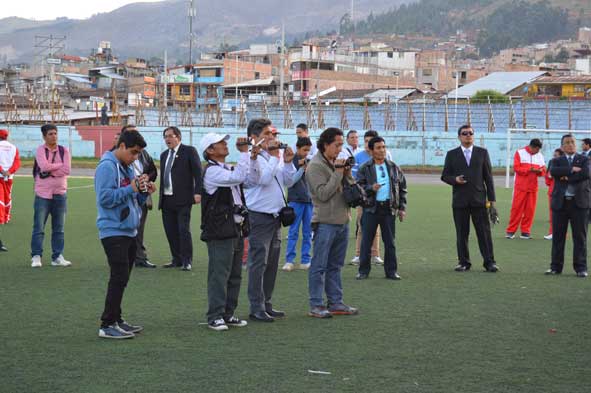 Periodistas peruanos y ecuatorianos ejerciendo su función en estos IX Juegos Binacionales de Integración Fronteriza: Perú – Ecuador: