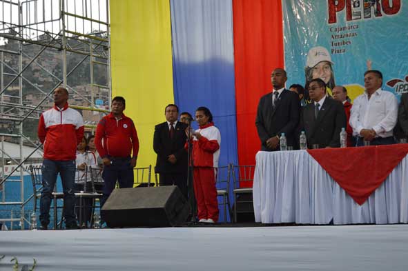 Juramentación a los deportistas del Perú y Ecuador a cargo de la deportista Jelin Cotrina Salazar de la IE Amauta distrito Callayuc, Cutervo