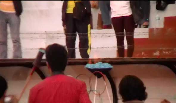 Encendido de la Antorcha Olímpica por delegados deportistas de Perú y Ecuador: