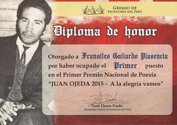 El Gremio de Escritores del Perú organiza anualmente el Premio Nacional de Poesía Juan Ojeda, en el año 2015 que ya se fue nuestro vate cajamarquino Fransiles Gallardo ha sido ganador del Primer Premio Nacional de Poesía Juan Ojeda 2015.