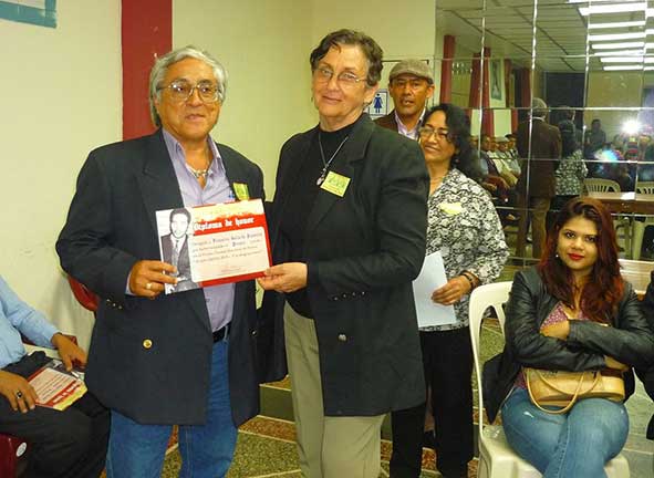 En ceremonia especial de hicieron entrega del Diploma de Honor que lo hace acreedor a este Premio firmado por el escritor Luis Flores Prado Presidente del Gremio de Escritores del Perú.