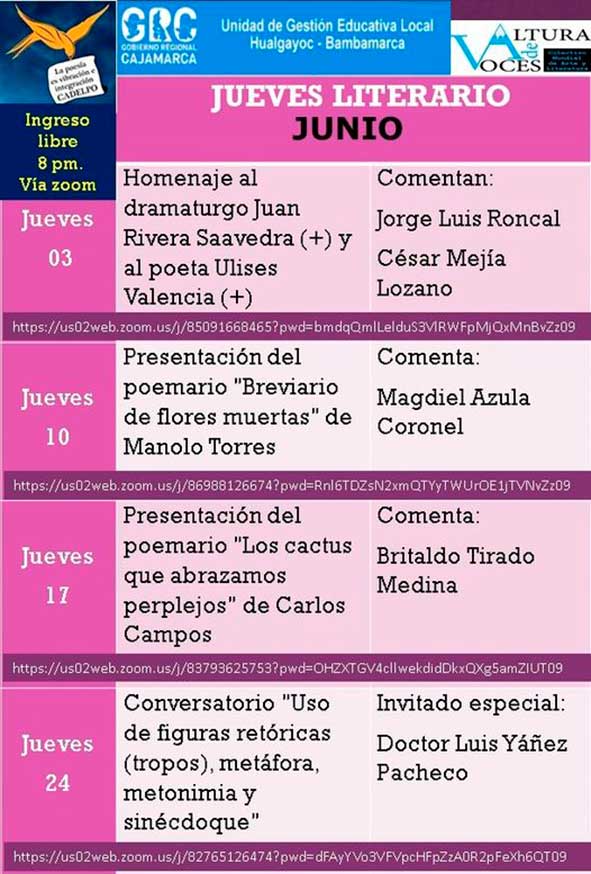 programación cultural del mes de junio que se desarrollará en la ciudad de Bambamarca