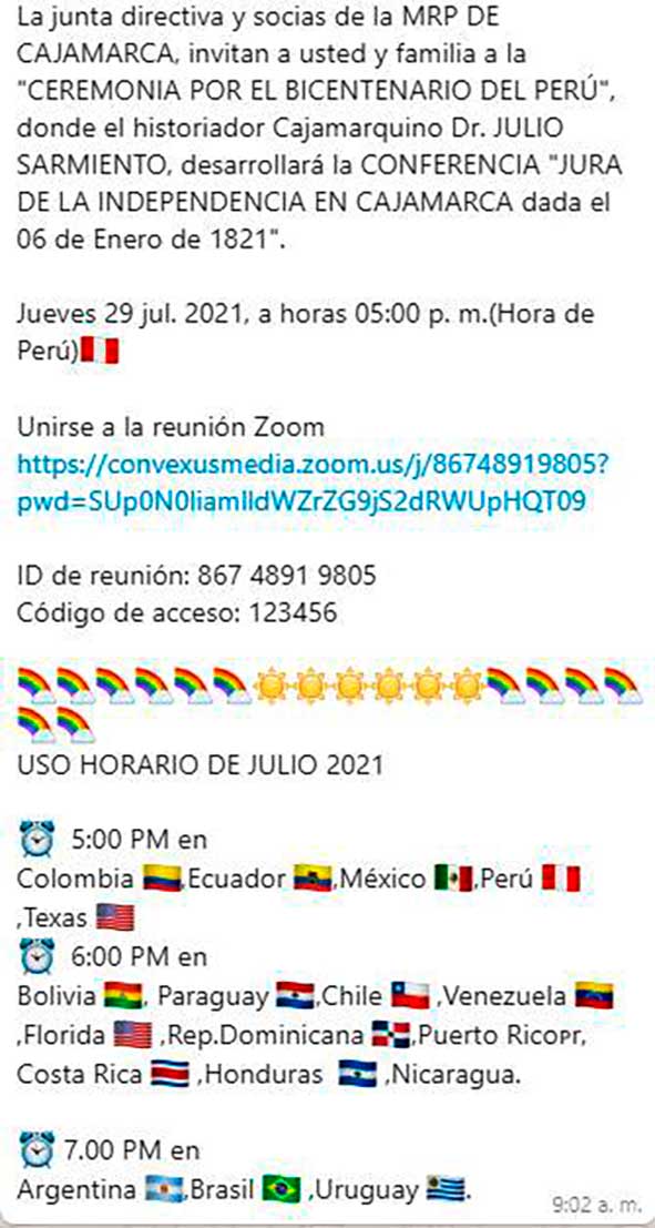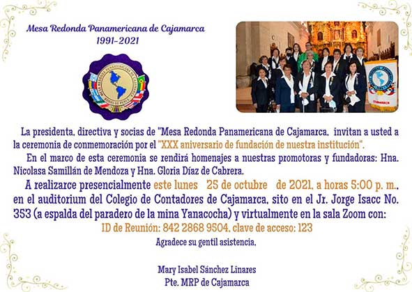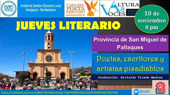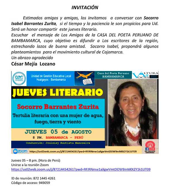 Todos cordialmente invitados. Jueves 26 – 8 pm. (Hora de Perú)