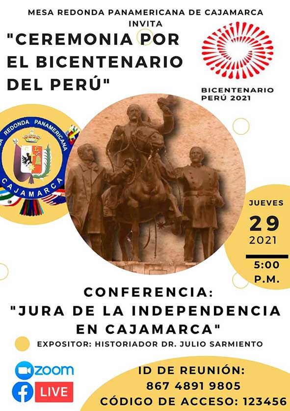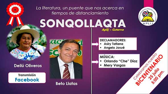 Te invitamos a celebrar nuestro BICENTENARIO a ritmo de música y literatura. Domingo 25 de julio, desde las 5:00 pm., a través de nuestra página oficial: Aplij Cutervo.