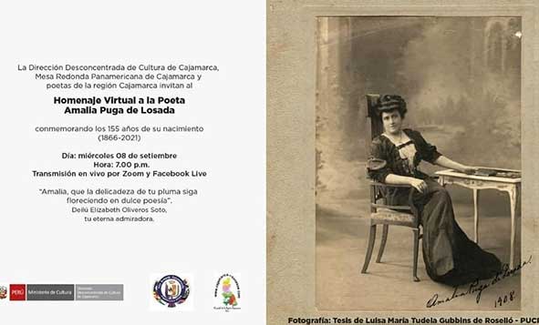 Homenaje virtual a nuestra distinguida y laureada Poeta Amalia Puga de Losada.Ingresar a Facebook live de la DDC-Cajamarca.