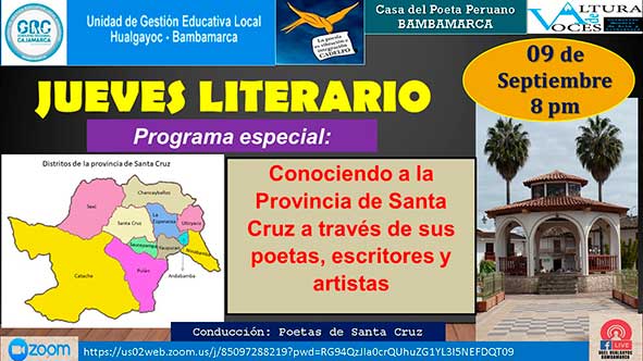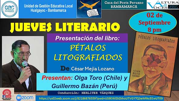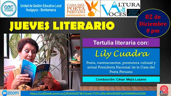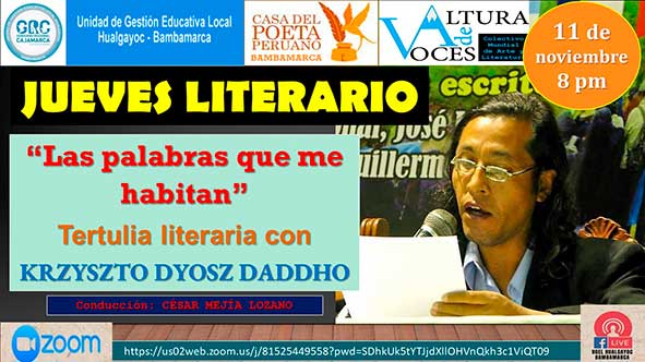 Será un conversatorio inolvidable. Adjuntamos flayer y pronto les estaremos alcanzando el link que generosamente nos cede el escritor Walter Lingán, a quien desde ya nuestra gratitud.