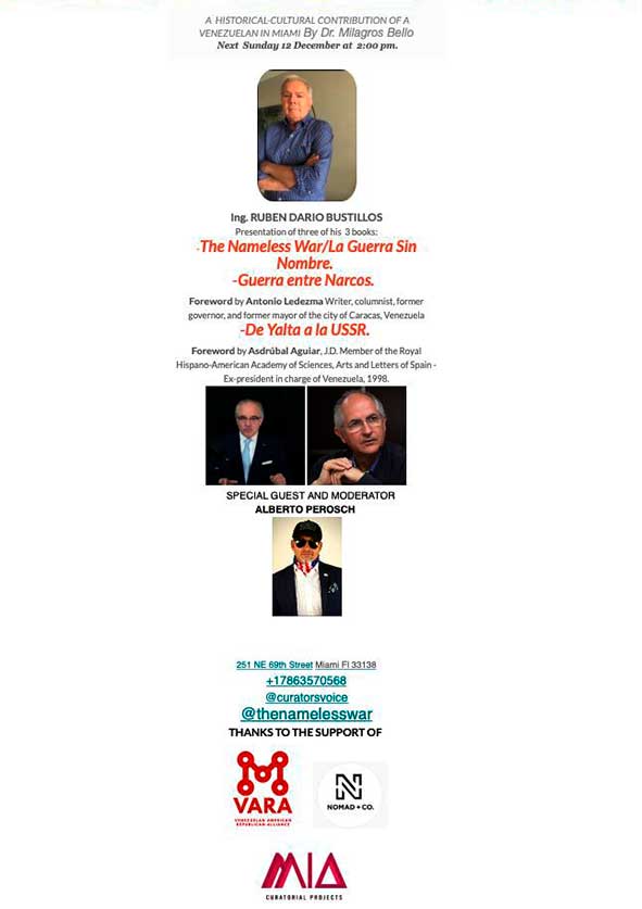 Tengo el honor de invitarle al acto de bautizo de mis tres últimos libros: "La Guerra sin Nombre"; "Guerra entre Narcos" y "De Yalta a la desintegración de la URSS".