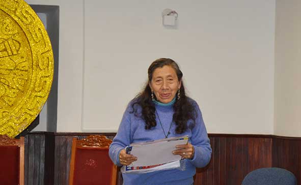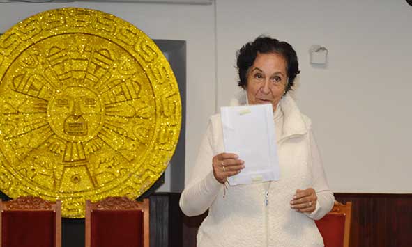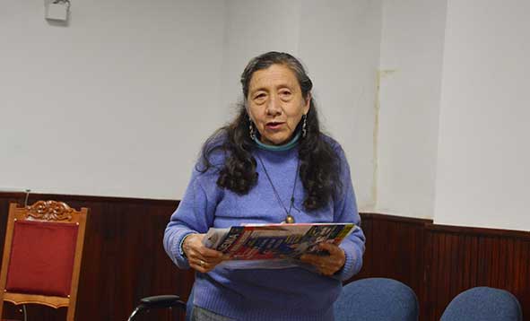 Participación de la poeta Socorro Barrantes leyendo una composición dirigida a la Poeta Lilian Goicochea.