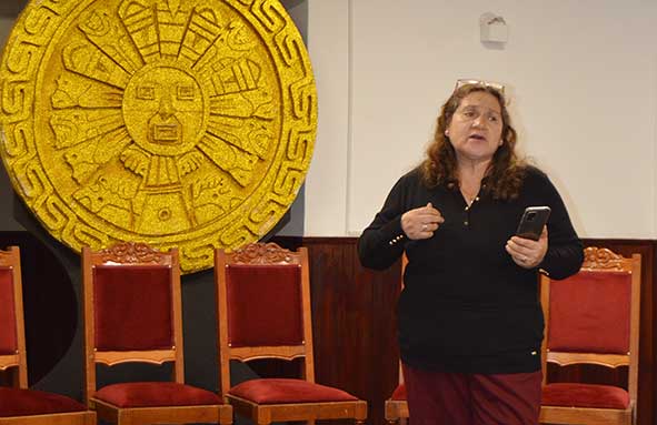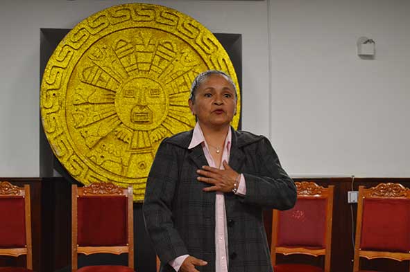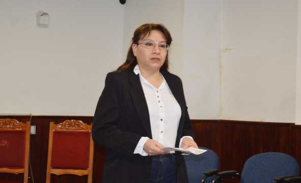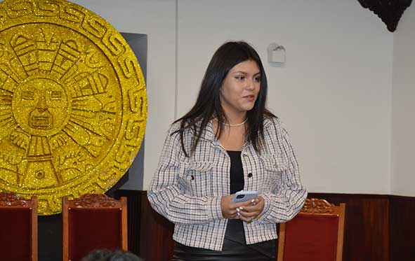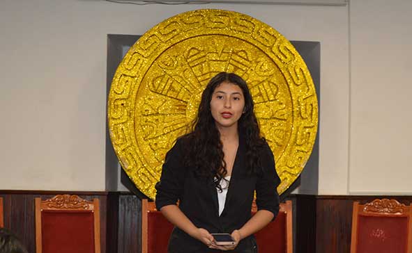 Jaqueline Mendoza Salazar da lectura a su carta dirigida a la Lic. Consuelo Lezcano.