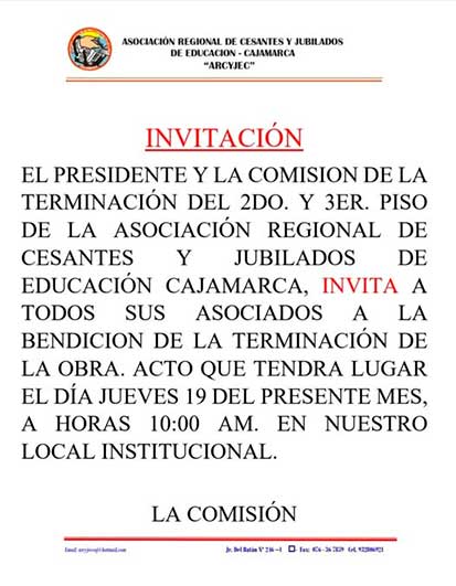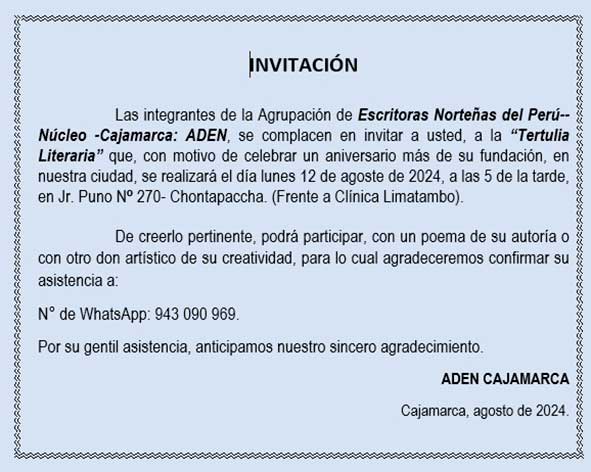 medio cultural cajamarquino, están invitados a la presentación