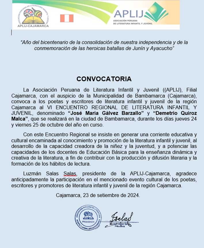 | VI ENCUENTRO REGIONAL DE LITERATURA INFANTIL Y JUVENIL “José María Gálvez Barzallo” y “Demetrio Quiroz Malca”