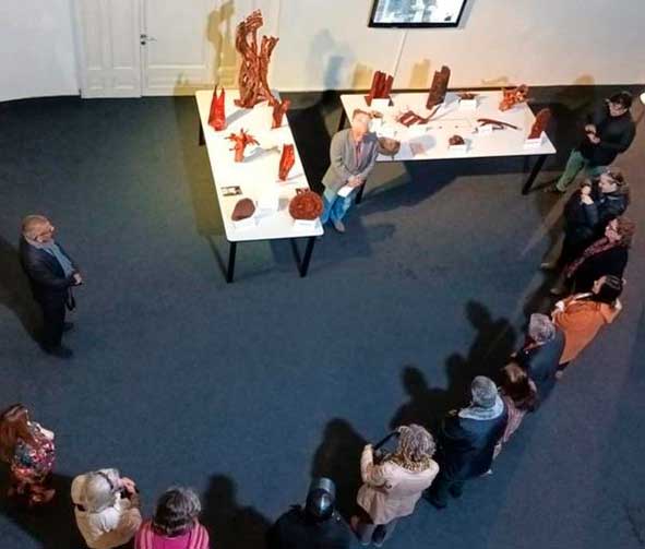 CUERPO & RAÍZ, NATURALEZA REDIVIVA Fransiles Gallardo El cuerpo, los cuerpos, brotan en la naturaleza, de la naturaleza, sobre las curvilíneas y agrestes siluetas terrenales. La raíz, las raíces, se entronizan y se profundizan dentro de la naturaleza, bajo geológicas capas terrenales. El cuerpo, los cuerpos, lucen espléndidos y se muestran mágicos y bellos; pero por indefinidas razones se deterioran, se maltratan, desfallecen y fallecen volviéndose polvo del polvo, en cualquier rincón terrenal. La raíz, las raíces no se lucen, ni se muestran, pero de su solidez dependen la frondosidad, la floresta y su belleza vegetal. Es la base de la ingeniería para el encumbramiento de las edificaciones. El arte y el artista en su imaginación aprecian y visualizan lo que otros ojos no pueden descifrar. Sus manos y su paciencia pueden perennizar y revivir la mortalidad y el abandono poético, mediante un trazo, un verso, un grabado, un dibujo, un poema, una escultura o un simple tallado vegetal. En esta Exposición en el marco del 11 Festival Internacional de Poesía FIP 2024, es mi humilde aspiración que estas modestas piezas artísticas sean un rendido canto a la sobre vivencia; un prolongado estertor a la existencia de estos maderos, con la belleza intrínseca deteriorada. Los tallados de Cuerpo & Raíz, en esencia trata de devolverle la memoria, el recuerdo y la existencia, a una raíz consumida, a un madero apolillado, a una hoja estéril o a una corteza estropeada, que fue tirada en un abandonado terreno baldío que, en poco tiempo y el clima, las convertirían en poco tiempo, en brasas, abonos o simple sustento de insectos y gusanos. El poeta, médico y amigo mío Ángel Gavidia, me preguntó una vez, si el tema buscaba a su escritor. Yo creo que sí, y ha acontecido con este modesto escritor y poeta. En los años 80, como Ingeniero viví la época del terrorismo y publiqué mi Entre Dos Fuegos Historias de Ingenieros. Fui a la selva peruana a construir un colegio, cuando Miky Gonzales cantaba “Vamos a Tocache, que la coca van a legalizar” y publiqué Puka Yaku, río de Sangre. Últimamente como Ingeniero, he vivido las extorsiones en Construcción Civil y acabo de publicar mis Cascos Blancos, Extorsiones y Sicariato en Construcción Civil en el Perú. Un par de simples anécdotas para confirmar mi personal afirmación sobre estos tallados de esta Exposición: Caminaba distraído por un parque y de una palmera cayó una hoja, a centímetros de mi cabeza y delante de mis pies. Asustado, lo tomé entre mis manos, lo miré, tenía un corte, semejando un ojo. El resto es consecuencia mía. Allí está, frente a ustedes, como testimonio de su pervivencia. En mi antiguo barrio, se realizaban trabajos de asfaltado de pistas y durante cuatro días; mañana y tarde, ida y venida, veía un pedazo de tronco, tirado a un costado. Me paraba, lo miraba, nos mirábamos y al quinto día, no pude más y lo cargué sobre mi hombro hasta mi casa. Ahora está aquí, redivivo como evidencia de su nueva existencia. Amigos poetas presentes, venidos de varios países del mundo, amantes del arte y la poesía: Quiero confesarle mis miedos, a su juicio crítico. A mis 70 años es la Primera Gran Exposición como Tallador en Madera. Ni siquiera sé lo que realmente significa la magnitud de este momento. Soy un obrero de las artes, un Ingeniero de las Construcciones y proyectos de Ingeniería. No soy Escultor. Soy simplemente, un intrépido trabajador del arte. El temor me invade, como cuando, en una plaqueta universitaria, hace 50 años salió publicado un poema mío, o cuando, ante un implacable maestro universitario presenté mi primer trabajo, como estudiante de Ingeniería Civil. Tengo temor a su crítica y a su censura. Soy Ingeniero Civil de profesión, pero un autodidacta en el arte, en el dibujo, la composición musical o el tallado. Sólo pretendo en mi yo interior que, ojalá en alguno de estos tallados, encuentren un rasgo de un verso poético o el simple atisbo de un poema; en el entendido que, en cualquier manifestación artística, existe siempre, una tenue pincelada poética. Digo y reafirmo, que en el corazón de un poeta existe un ingeniero y en el cerebro de un ingeniero supervive un poeta. Acaso, en el fondo de un poema palpita una obra de ingeniería y en una intrincada obra de ingeniería, laten brochazos de poesía. Amigos poetas, amigos todos, solo modestamente pretendo que, en esta Exposición Cuerpo & Raíz, de este 11 Festival Internacional de la Primavera FIP 2024, encuentren talvez en estos tallados, unos rasgos de poesía, en las sinuosidades de estos maderos, de estos cuerpos y raíces, devueltos a la hermosura y brillantez de su previa vida. Finalmente, mi agradecimiento a la Municipalidad Metropolitana de Lima por otorgarnos este hermoso espacio y muy especialmente mi gratitud personal; al gestor cultural, al poeta, al editor, al que “como carajo, hace para realizar festivales poéticos, tan brillantes, como este"; pero básicamente, mi abrazo a mi amigo Harold Alva Viale, por esta insólita apuesta; por rastrear poesía en estos maderos que hoy están para sus ojos críticos. Gracias Infinitas, infinitas gracias.