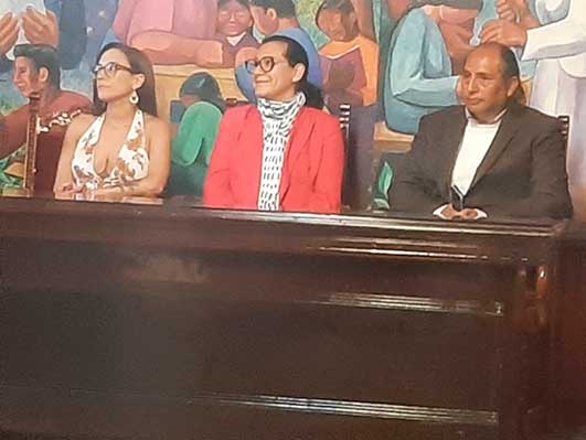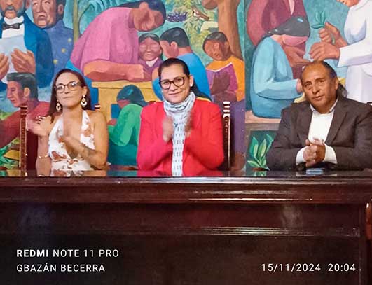Esta muestra, según la expositora, quien es además ingeniera ambiental con una maestría en gestión de patrimonio cultural y natural de UNIR España, “… no es solo una exploración estética; es un acto de reflexión y resignificación. Al trabajar con archivos fotográficos de 1850 a 1950, he buscado revivir memorias que han quedado atrapadas en el blanco y negro del del tiempo. Sin embargo, quiero ser clara: este proyecto no pretende romantizar las cicatrices profundas que nos dejó el genocidio y la violencia de la conquista. No estamos aquí para glorificar un pasado doloroso, sino para imaginar un presente y un futuro, donde esos hitos sangrientos no definían nuestra identidad. Esta muestra es un acto de reconciliación con nosotros mismos, con quiénes fuimos y con quiénes queremos ser. Las técnicas empleadas-bordados que restauran las prendas de nuestros antepasados, intervenciones con materiales reciclados y texturas contemporáneas-no buscan borrar la complejidad de nuestra historia, sino integrarla. Porque en cada hito, en cada imagen revitalizada, hay un esfuerzo por darle un nuevo sentido a lo que heredamos, por tejer una narrativa que nos permita ver más allá del dolor. Como cajamarquina, ingeniera ambiental, artista y gestora cultural, mi trabajo siempre busca tejer conexiones. Aquí, esas conexiones se manifiestan en un mestizaje de tiempo, espacio y significados. Esta muestra es una invitación a ver nuestra historia no como una línea rota, sino como una trama, donde, incluso en medio del sufrimiento, han nacido, creatividad, resistencia y belleza. Espero que este recorrido despierte en cada uno de ustedes una conexión personal con nuestra memoria colectiva, que puedan encontrar en estas obras un espejo de sus propias raíces y una invitación a reconstruir nuestra identidad desde la pluralidad y la esperanza. Hoy más que nunca necesitamos reconciliarnos con quiénes somos y lo que podemos llegar a ser. Les invito a caminar por esta muestra con una mirada abierta y un espíritu crítico, para que juntos reinscribamos la trama de nuestra historia”. La Lic. Pilar Hoyos Estela, sub gerente de Cultura de MPC, al presentar a la expositora, tuvo palabras muy elogiosas para ella y su excelente trabajo artístico que contribuye al desarrollo cultural de nuestra región Cajamarca y del Perú en su conjunto. El Profesor. Daniel Cotrina Rowe, de la Escuela de Arte Mario Urteaga, de quien es alumna la joven expositora, estudiante de esa escuela. Resaltó la importancia que tiene que desde hace casi una década están surgiendo exponentes de dibujo, pintura y escultura de esa institución porque tienen la motivación del concurso internacional de pintura rápida anual con participación de maestros de fama internacional que dejan sus enseñanzas.
