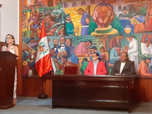 SINGULAR EXPOSICIÓN “TRAMAS MESTIZAS”, de la artista plástica Marystela Camacho Cotrina Consuelo Lezcano Ruiz “La artista plástica cajamarquina Marystela Camacho Cotrina, utilizando fotos de la segunda mitad del siglo XIX y primera del XX, con retoques o bordados y texturas, lo que forma parte de la enseñanza en la Escuela de Bellas Artes “Mario Urteaga”, presentó su primera muestra personal, la tarde del 15 del presente mes de noviembre, en el Centro Cultural “Miguel Espinach”, siendo muy aplaudida por la numerosa concurrencia que colmó el auditorio principal del citado auditorio.
