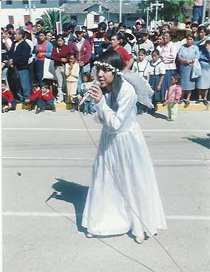 representan a los ángeles, por lo que su vestuario es blanco puro, un largo