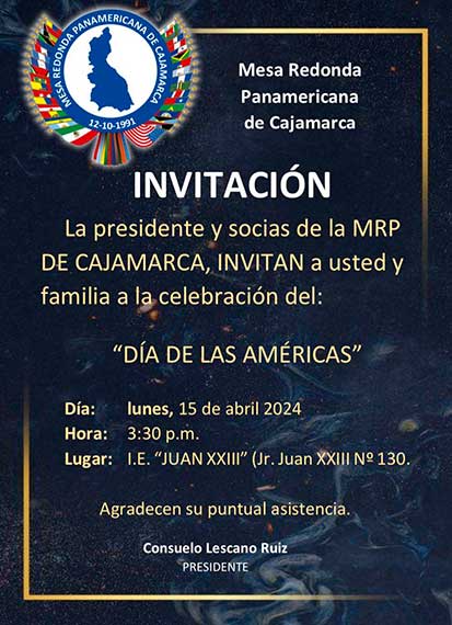 CELEBRACIÓN: “DÍA DE LAS AMÉRICAS”. Organizan: Mesa Redonda Panamericana de Cajamarca e IE Juan XXIII de Cajamarca.