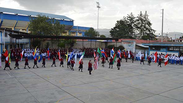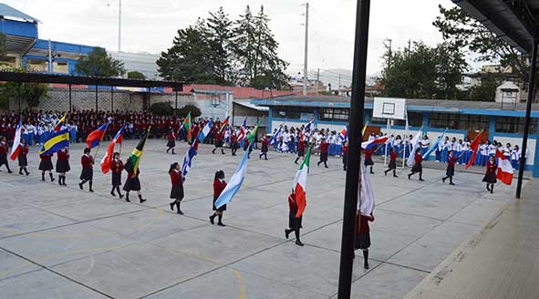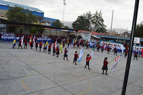6. Desfile de Banderas por el patio principal de la IE Juan XXIII.