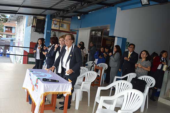 1. Himno nacional del Perú, entonado por todos los asistentes. 2. Saludo y bienvenida a cargo del Prof. Julio César.