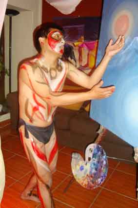 Un rotundo éxito fue la ceremonia inaugural de la “VII Exposición Pictórica y Fotográfica” del talentoso y joven artista cajamarquino Víctor Amado Portal, como se dio a conocer este gran suceso se llevó a cabo en la Sala de Exposiciones del Centro de Información y Cultura de Yanacocha CIC. Cuando ingresamos a la primera sala fuimos impactados por una maravillosa coreografía preparada por los integrantes del grupo de danzas “Algo vi pasar”, allí, dos jóvenes y una señorita posaban de pie en vitrinas cubiertas con tules transparentes y con movimientos rítmicos, giratorios y gesticulares cambian de posición. |