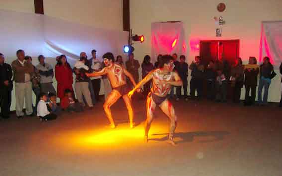 Seguidamente, dos jóvenes integrantes del grupo de danzas “Algo vi pasar” presentaron una danza con movimientos muy expresivos y al final de ella develaron los lienzos al ritmo de un fondo musical envolvente en la penumbra que nos encontrábamos. |