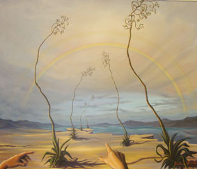 Los que habíamos llevado cámara fotográfica nos disputábamos los espacios para plasmar algunas tomas pictóricos, a continuación les alcanzo fotografías de los lienzos de Víctor Amado. |
