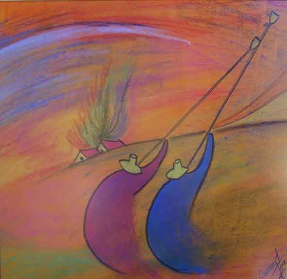 Pepe Chávez es un cajamarquino y, a mi Parecer, los cuadros que nos ofrece en esta exposición pictórica son como una interpretación visual de la filosofía del gran pensador cajamarquino Mariano lberico Rodríguez, quien desarrolló el pensamiento dinámico del francés Henri Bergson. Bergson hablaba del élan vital y del dinamismo del mundo y de la vida humana. Esto es lo que se siente al mirar estos cuadros. Están llenos de vida, llenos de alegría, llenos de esperanza. Son los frutos de una reflexión sobre lo positiva que es la vida en el Ande. Aquí no llora el clarín, como en la poesía de Mario Florián."