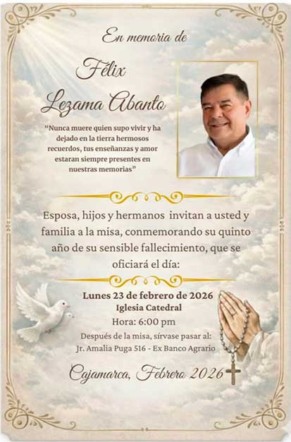 Misas de Honras, de Salud, Patronales y Cultos Evangélicos 2026.