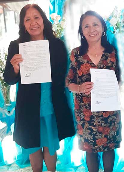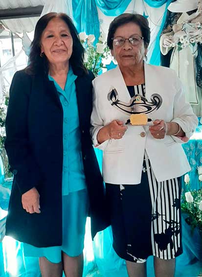 Con igual Reconocimiento y felicitación a: Bazán Rojas Flor de María; Mego Jara Clementina; Cruzado Spelucín Elva; Tiznado Chomba Ana María; Ortiz Vda. de Correa Julia; Siesquén Valverde María; Gamboa Vílchez Doris; Chávez Arévalo Ana; Vargas Amézaga Aura; Romero De Vásquez Edita; Cerna Hernández Edy; Córdoba Menéndez María; Cruzado Rasco María; Quevedo Salazar Emelina; Rabanal Salazar Flora; Gallardo de Álvarez Ana María; Vargas Culqui Nancy y Araujo de Navarrete Mary.