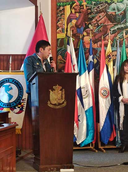 La señora Sánchez, luego de saludar a las funcionarias de la Asociación Nacional y de la Alianza de Mesas Redondas Panamericanas; así como, a las directoras y socias de todo del Continente Americano y, público en general, manifestó: “Es un honor para la Mesa de Cajamarca presentar al destacado artista plástico cajamarquino: Joan Alfaro Cabrera, mayor exponente del surrealismo andino y representante de la Marca Perú. Hecho este que es un orgullo para Cajamarca y el Perú”. “Gracias amigo Joan, por darnos a conocer tu exquisito arte profesional, y algunas pinceladas de tu fructífera vida”, acotó finalmente.