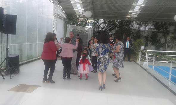 La Sra. Flor de María hizo el brindis de estilo e invitó a saborear el suculento almuerzo que fue asentado con abundante vino, gaseosas y cerveza. Luego se continuó con el baile con los invitados.